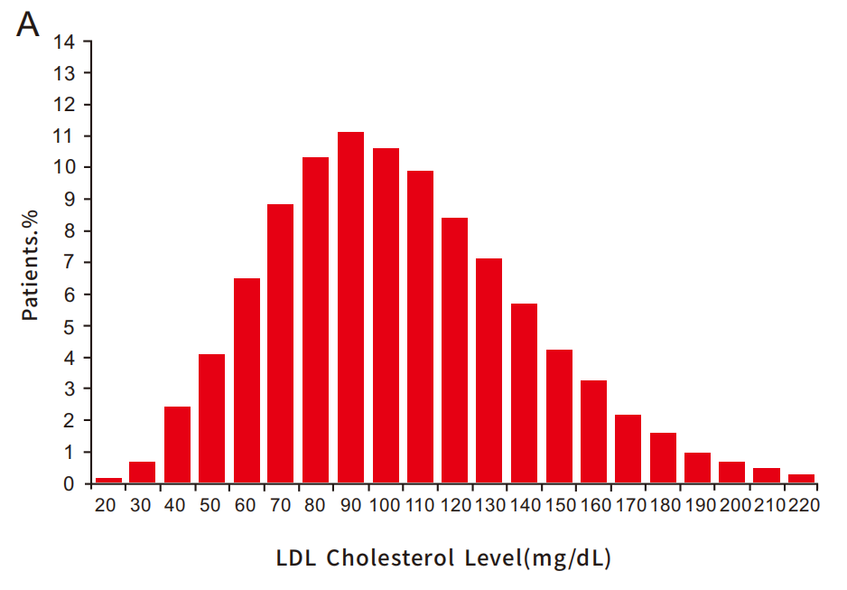 美國在2000?2006年對(duì)541家醫(yī)院的136905名冠心病住院患者調(diào)查發(fā)現(xiàn),有近50%患者?院時(shí)LDL-C<100mg/dL。結(jié)果提示LDL檢測(cè)存在?定的局限性,需要更加準(zhǔn)確可靠的指標(biāo)能夠及時(shí)發(fā)現(xiàn)CAD?群并盡早治療。