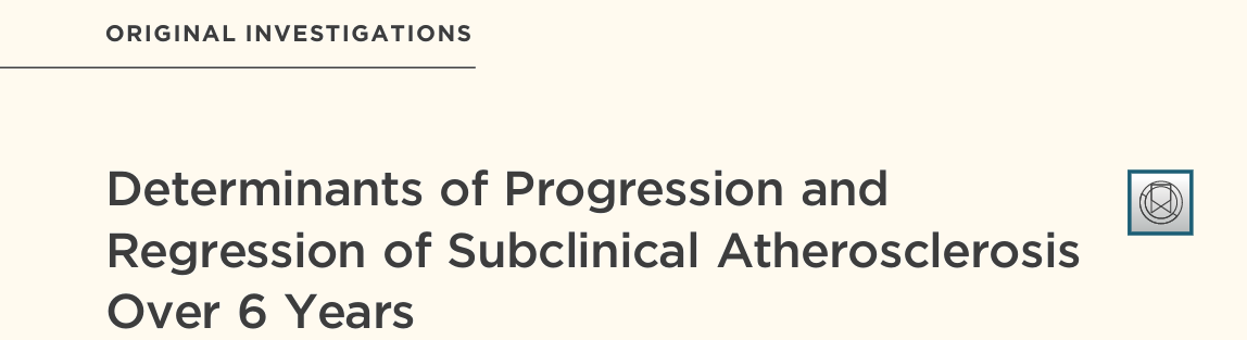 于2023年刊登于《美國心臟病學(xué)會(huì)雜志》(JACC)上的研究顯示:如果在中青年時(shí)就開始采取預(yù)防性干預(yù)措施,動(dòng)脈粥樣硬化斑塊有“消退”的可能,且如果能從疾病早期控制風(fēng)險(xiǎn)因素,則可實(shí)現(xiàn)動(dòng)脈粥樣硬化疾病的早期“治愈”(即斑塊的完全消退)。