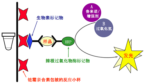 魯米諾與辣根過氧化物酶系統(tǒng)發(fā)光原理圖